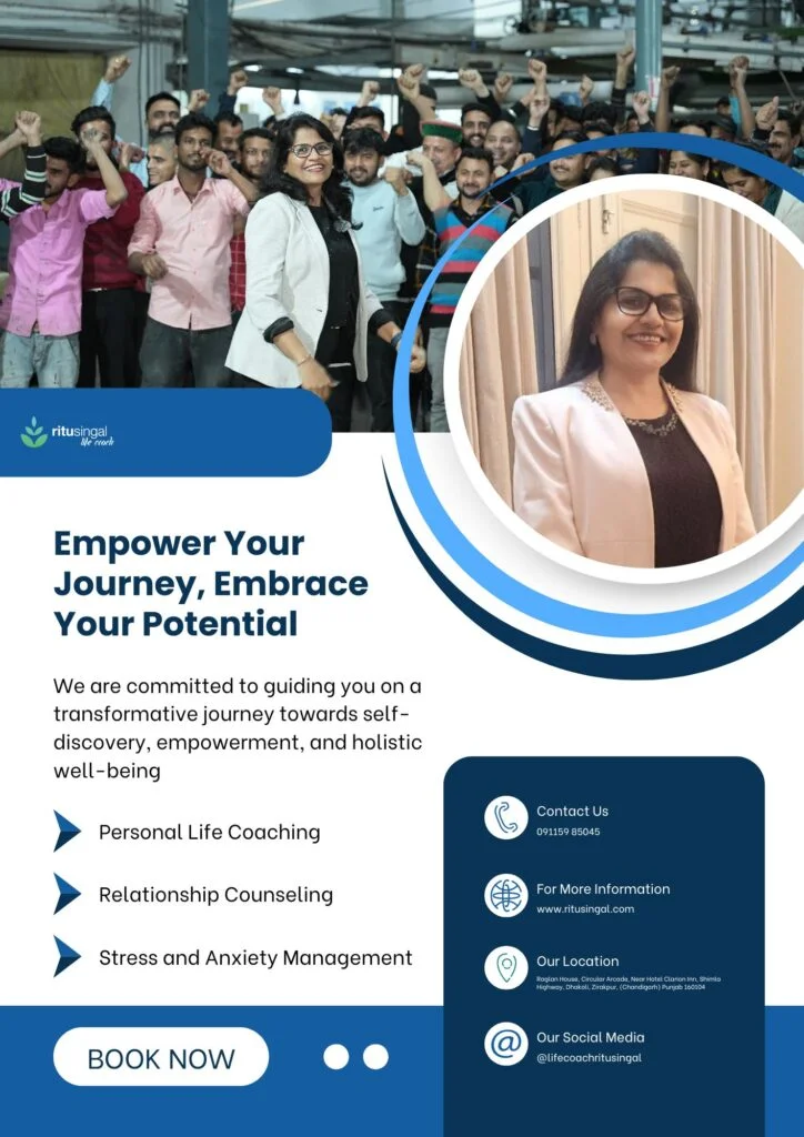 For more information about my services and to schedule a session, visit Ritu Singa. Let me help you become the best version of yourself and lead a life filled with purpose and fulfillment. Whether you are looking to overcome personal obstacles, enhance your professional skills, or achieve a better work-life balance, my comprehensive services are here to guide you every step of the way. Together, we can create a brighter, more empowered future.